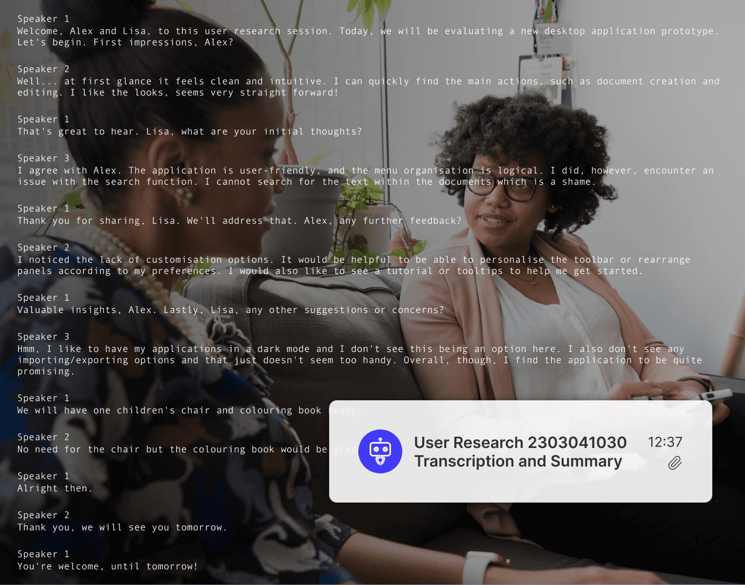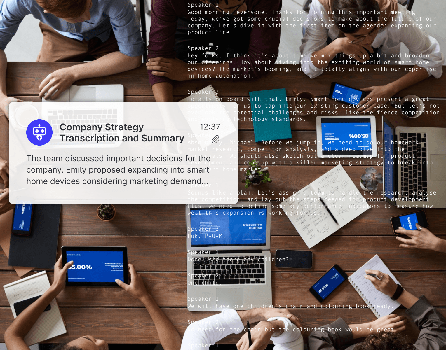 Our AI technology can accurately write down the spoken conversations. It even picks up on subtle cues. Is the speaker hesitating? The summary will tell.